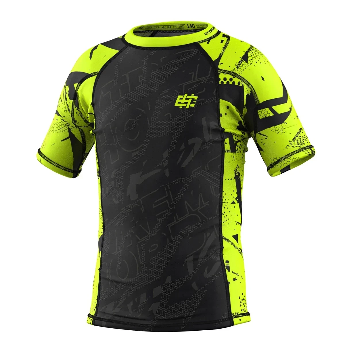 Termoaktywna koszulka dziecięca z krótkim rękawem typu rashguard. Idealna do sportów walki, na siłownię oraz wszędzie tam gdzie zwykłe koszulki bawełniane nie zapewniają należytej ochrony i komfortu.