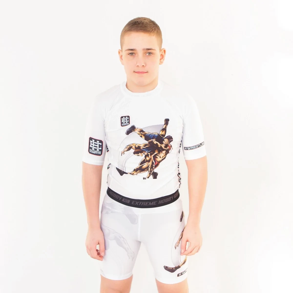 Termoaktywna koszulka dziecięca z krótkim rękawem typu rashguard. Idealna do sportów walki, na siłownię oraz wszędzie tam gdzie zwykłe koszulki bawełniane nie zapewniają należytej ochrony i komfortu.
