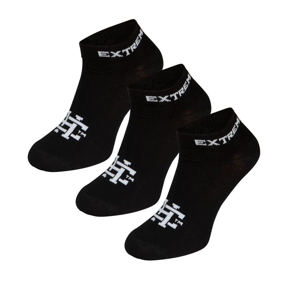 Zestaw trzech par skarpetek krótkich Extreme Hobby, które zapewniają komfort chodzenia przez cały sezon letni. Chronią stopę przed otarciami oraz odprowadzają nadmiar potu. Odpowiednio wyprofilowana dzianina na pięcie, doskonale przylega do stopy i ją stabilizuje. Skarpetki dostępne w trzech "trójpakach": czarnym, granatowym lub białym.
