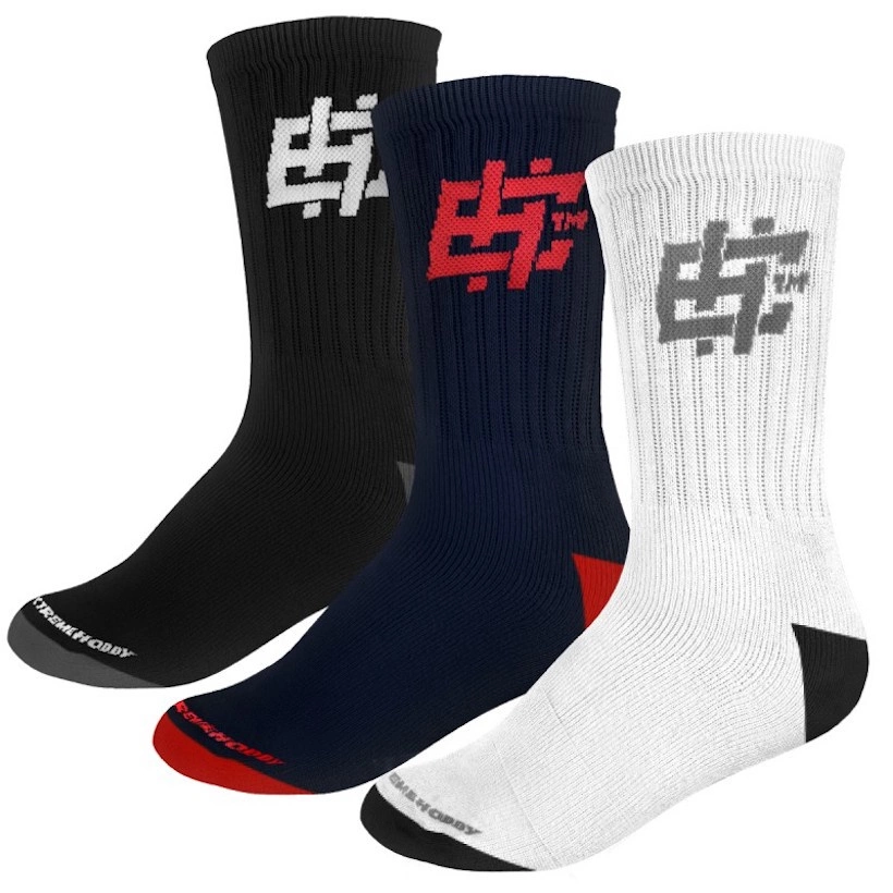 Długie skarpety Extreme Hobby Hashtag - zestaw trzech par. Model zasłaniający kostkę. Sportowy design z logotypem producenta po bokach, pięta i palce w kontrastującym kolorze.