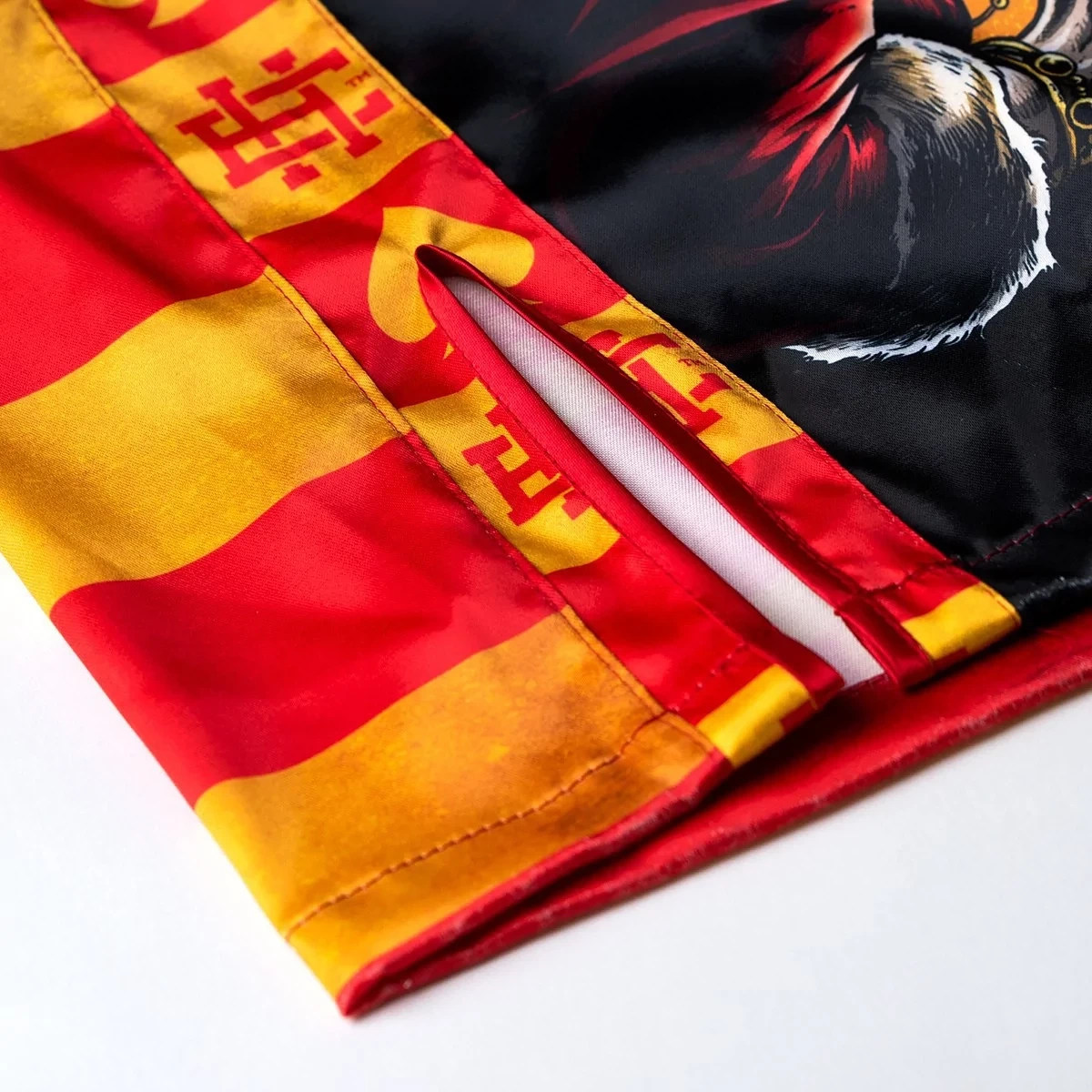 Oldschoolowy krój spodenek dla fanów klasycznego pięściarstwa. Wykonane z satyny – materiału bardzo przyjemnego w użytkowaniu i popularnego ze względu na wygodę oraz głębię mieniących się kolorów.