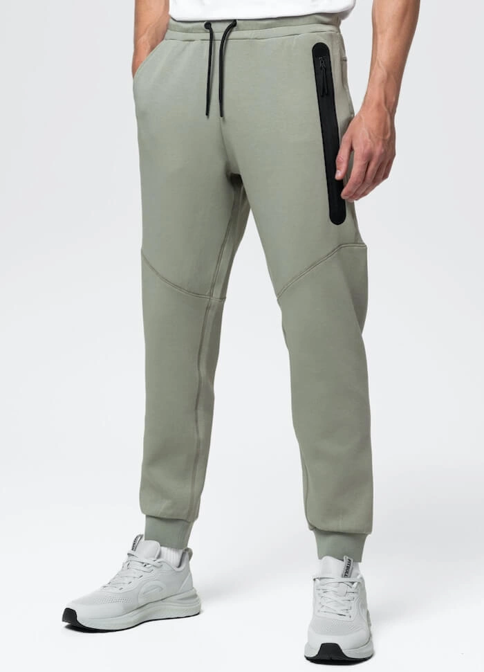 - Fason spodni lekko zwężany ku dołowi, ze ściągaczami na końcach nogawek.