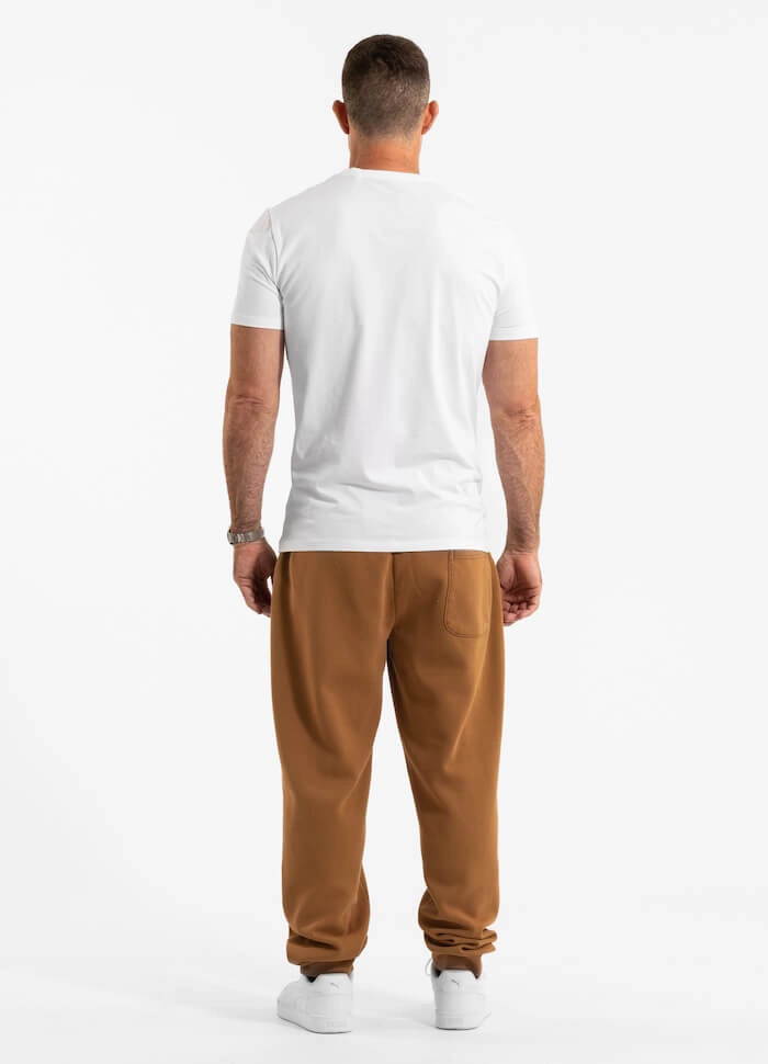 • Luźniejsze spodnie dresowo - treningowe ze ściągaczami na dole. Materiał: 70% bawełna, 30% poliester. Gramatura: 330 g/m2.