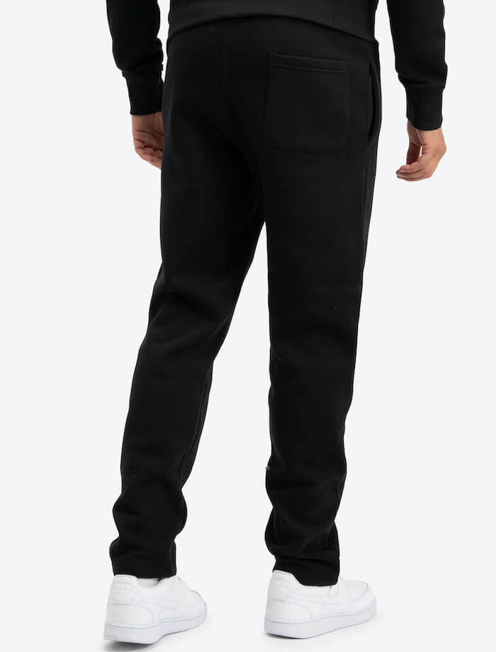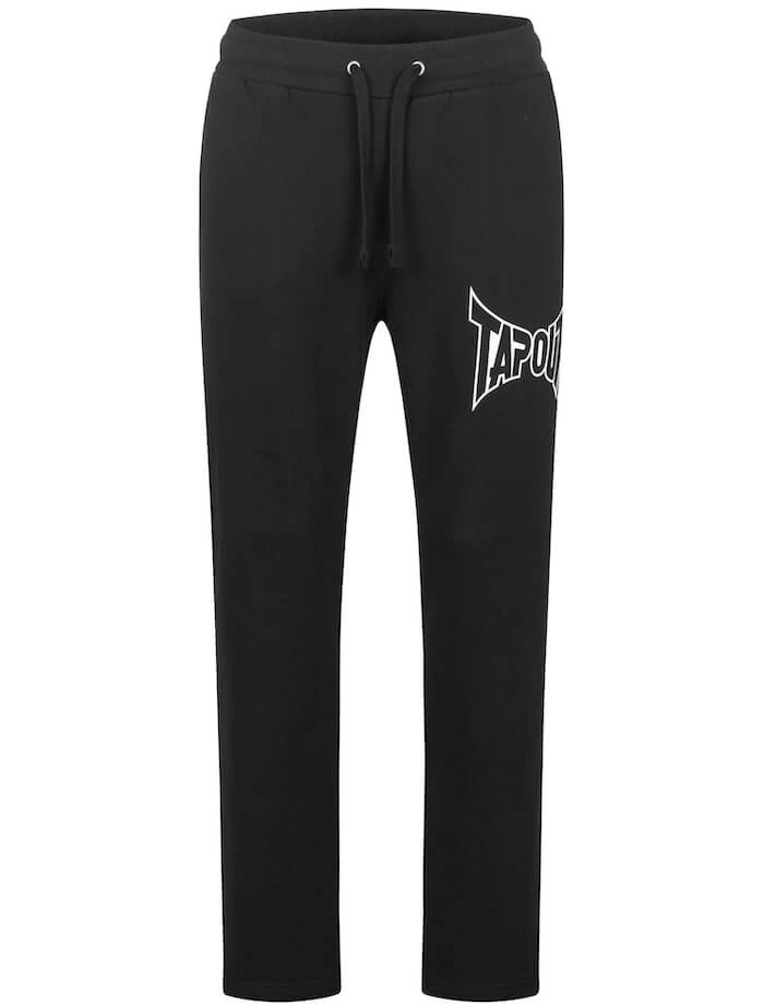 Wygodne spodnie dresowe Tapout Lifestyle o klasycznym, regularnym kroju, bez ściągaczy na dole. Na lewym udzie widnieje spore logo producenta wykonane sitodrukiem.