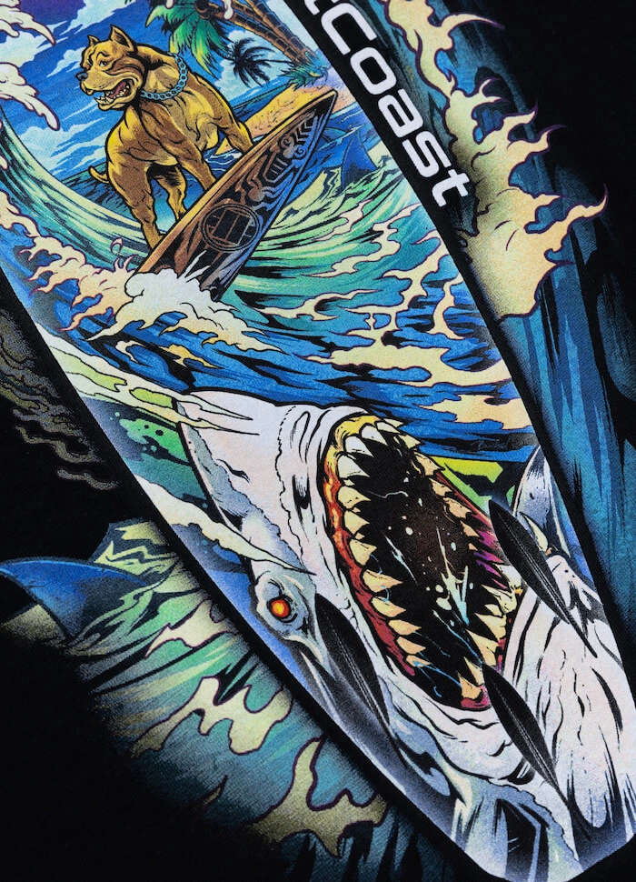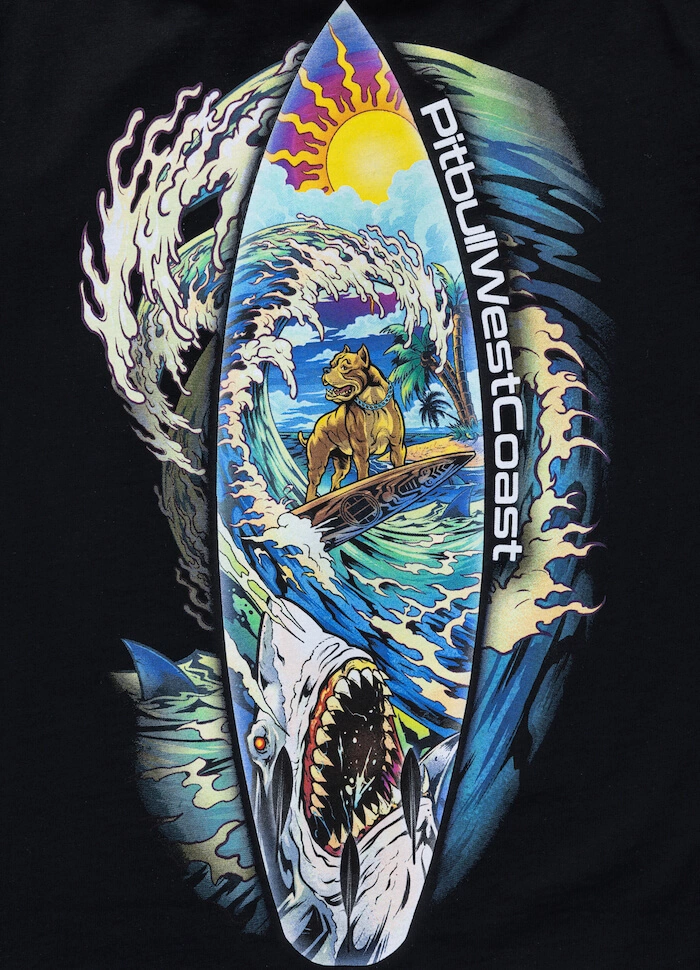 Na piersiach posiada duży napis firmowy, a na plecach dużą grafikę w wyrazistym wakacyjnym klimacie, charakterystyczną dla ciuszków Pitbulla.