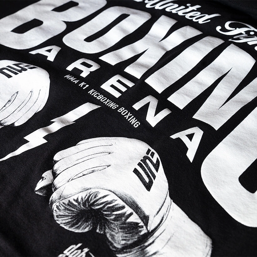 Koszulka Dobermans Aggressive Boxing Arena TS393, wykonana z bardzo dobrej dzianiny bawełnianej. Z tyłu posiada duży nadruk w klimacie bokserskim, wykonany techniką termotransferu. Z przodu niewielki motyw graficzny,
