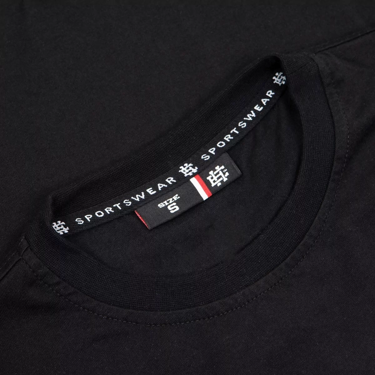 • na rękawku i z boku koszulki zostały wszyte żakardowe metki EH