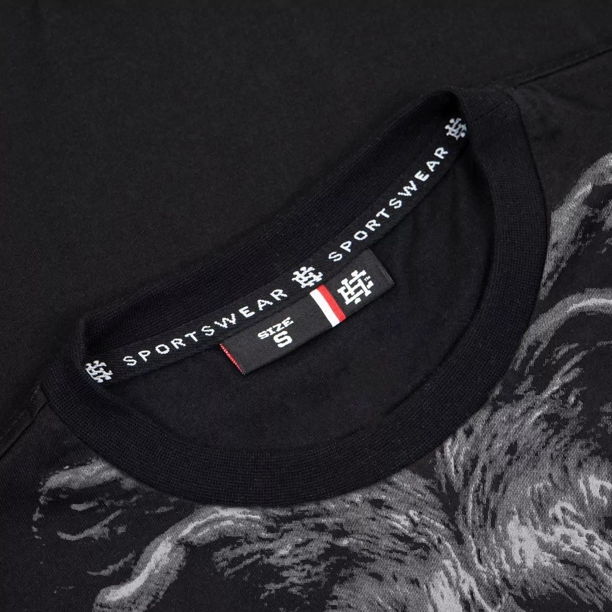 - na rękawku i z boku koszulki zostały wszyte żakardowe metki EH