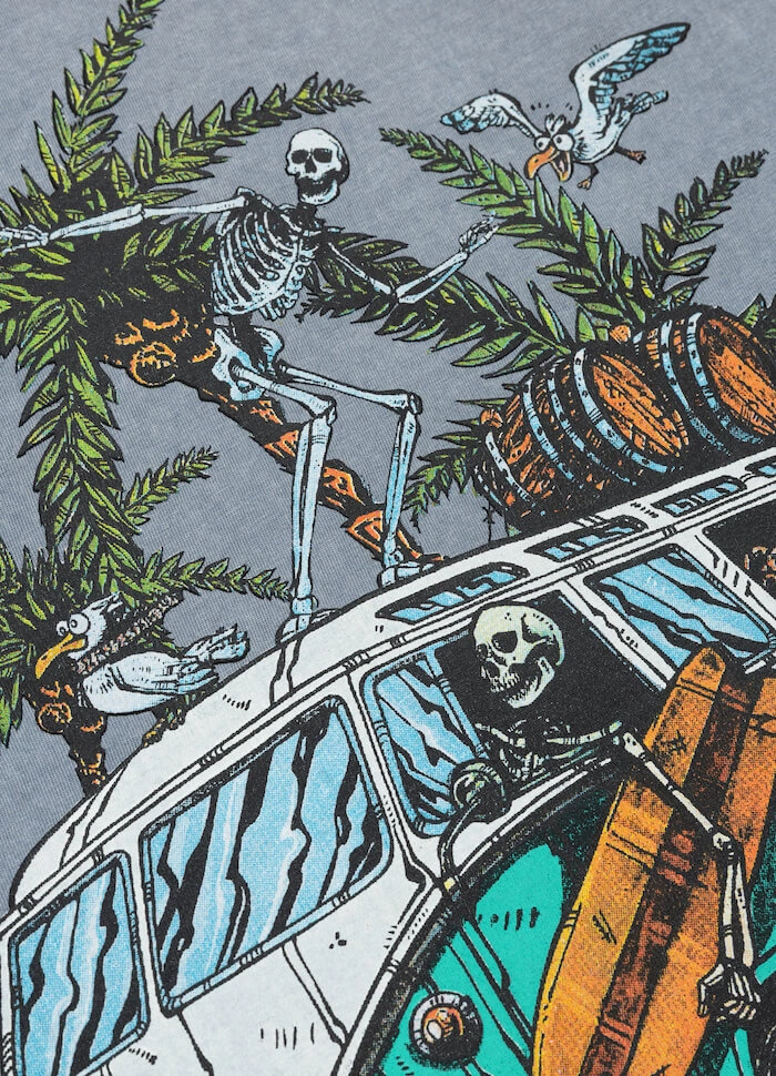 T-shirt posiada ciekawy motyw graficzny o tematyce wakacyjnej, ale w wyrazistym i zadziornym klimacie, charakterystycznym dla ciuszków Pitbulla. Nadruki zostały wykonane najlepszymi jakościowo farbami wodnymi, rewelacyjnie oddającymi detale i bardzo trwałymi.