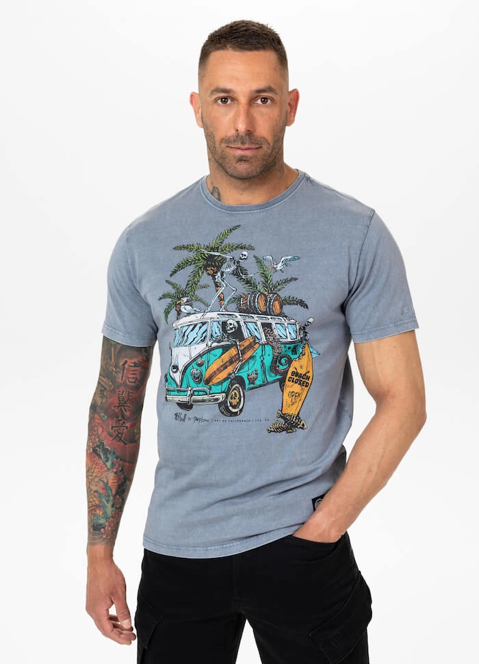 T-shirt PIT BULL Denim Washed OPEN BEACH błękitny (washed blue)