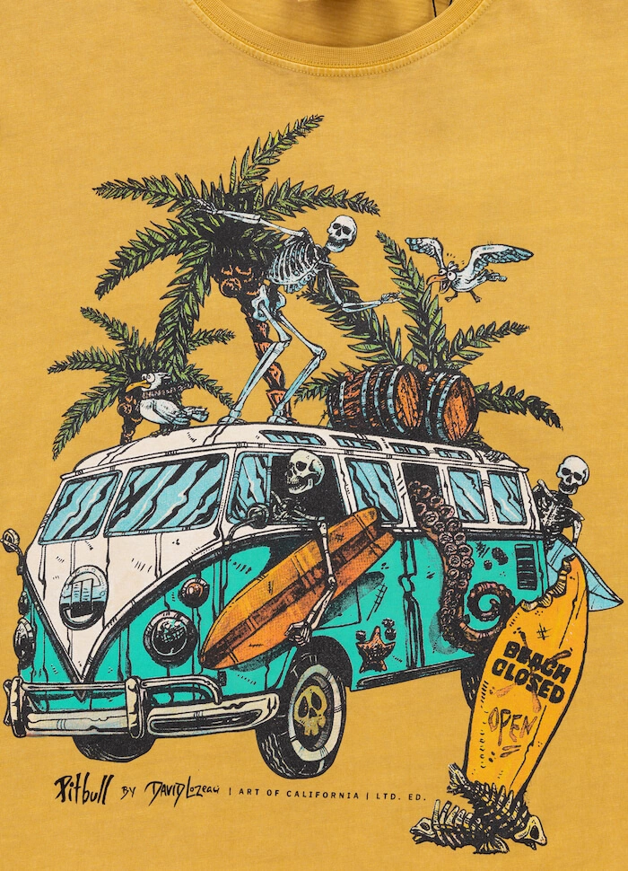 T-shirt PIT BULL Denim Washed OPEN BEACH żółty (washed yellow)
