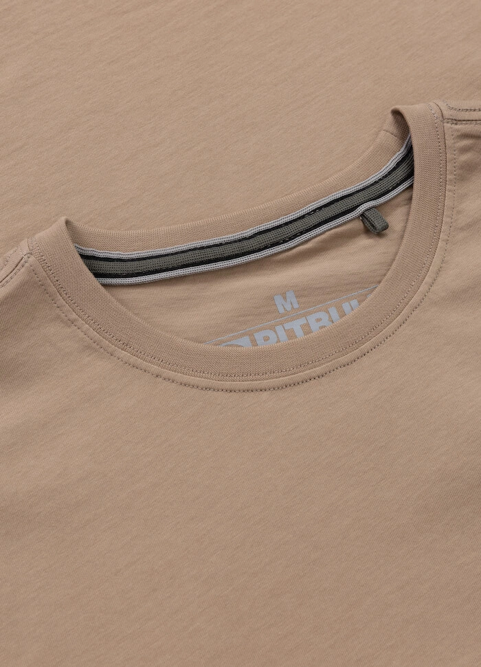 T-shirt został uszyty z wysokogatunkowej bawełny, odpornej na odkształcenia i wytrzymałej. Cechuje się też dobrą gramaturą (170 g/m2) oraz jedwabną lamówką umieszczoną na szyi, chroniącą skórę przed otarciami. Na dole i na rękawku wszyte są żakardowe metki firmowe.