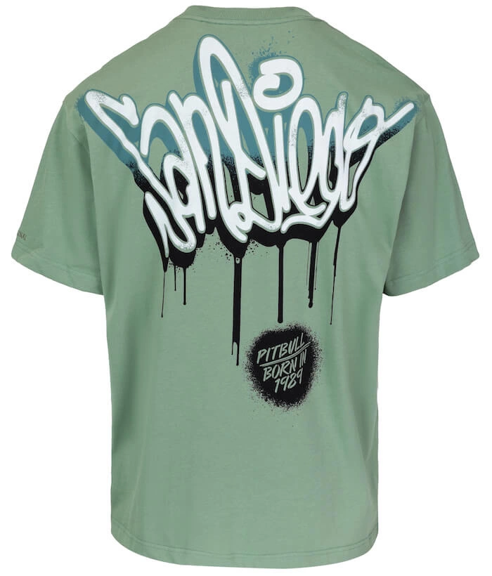 T-shirt PIT BULL Loose Fit GRAFFITI washed green