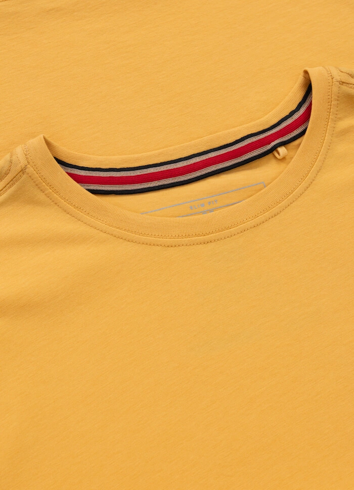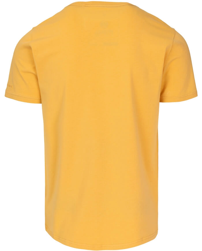 T-shirt został uszyty z wysokogatunkowej bawełny, odpornej na odkształcenia i wytrzymałej. Cechuje się też dobrą gramaturą (170 g/m2) oraz jedwabną lamówką umieszczoną na szyi, chroniącą skórę przed otarciami. Na dole i na rękawku wszyte są żakardowe metki firmowe.