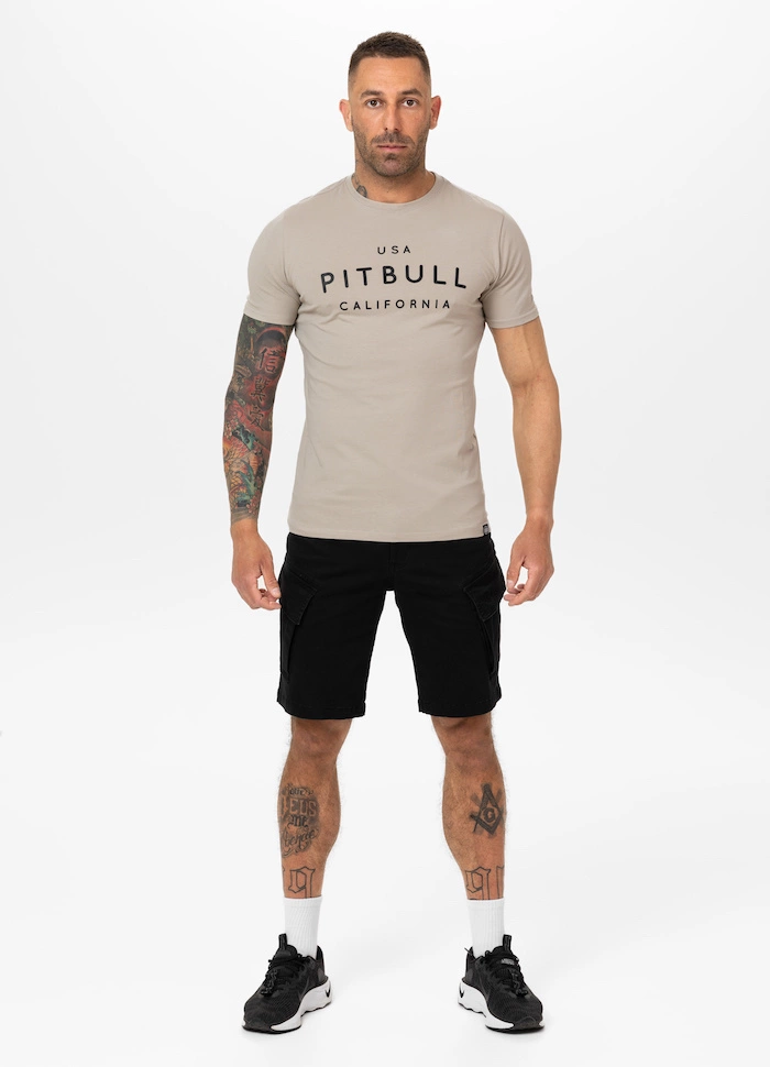 T-shirt PIT BULL USA CAL 190 spandex beżowy (greyish sand)
