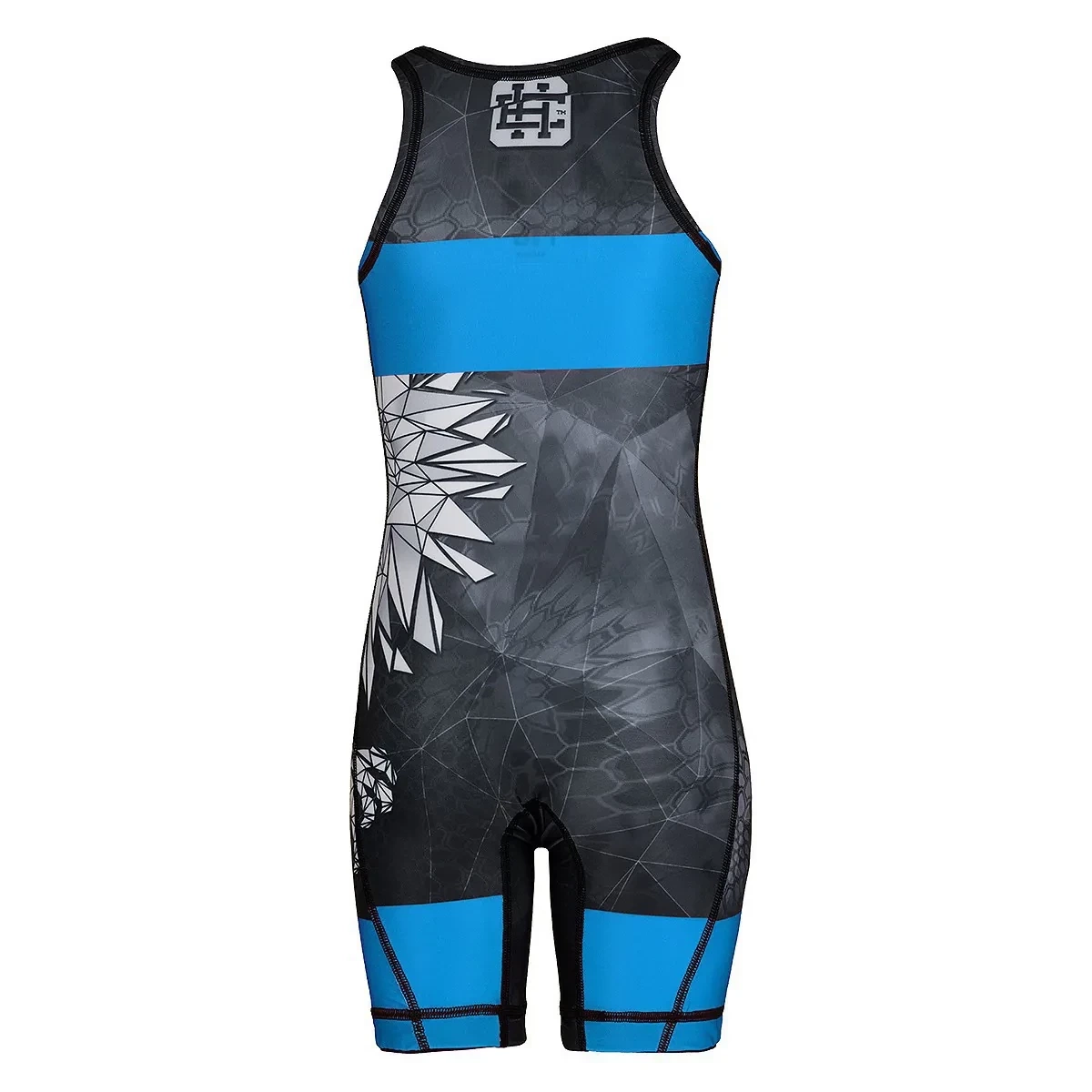 Dziecięcy kostium zapaśniczy o klasycznym kroju z homologacją UWW. Wykonany z wysokiej jakości lycry odpornej na ścieranie. Posiada gumowe wstawki niedopuszczające do plątania palców podczas walki.